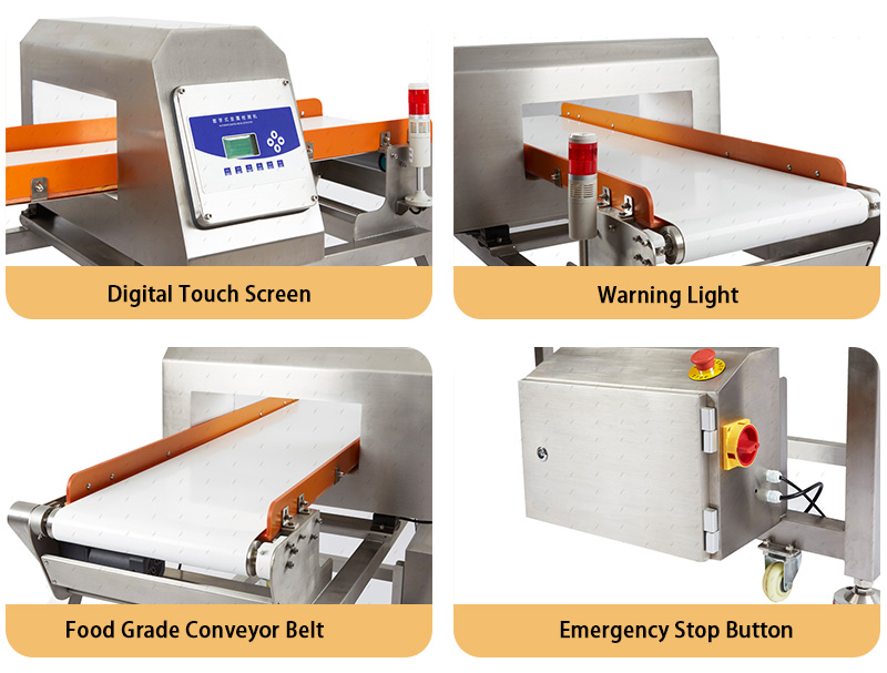 Industrial metal detectors with rejector have a wide range of applications and can be used in many industries and fields, such as the food industry, pharmaceutical industry, cosmetics industry, plastics and rubber industry, and textile industry, to check whether there are metal fragments or impurities in raw materials, semi-finished products and finished products, so as to prevent metal contamination from threatening food safety.